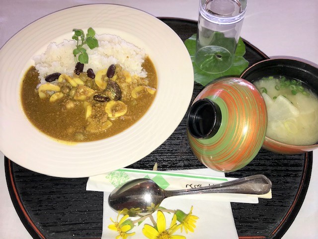 本日のホテルのランチはお休みです。 本日はみしま村じーばー倶楽部さまの特別ランチ500円です。 みしまカレーと俊寛なべです。 みしまカレーは大名竹、黒島のさつま芋・赤インゲン豆が入ったヘルシーな美味しいカレーです。 大盛況中の旬菜販売では伊勢海老やクロダイ等の海の幸、竹の子、つわぶき、さつま芋等の山の幸が沢山!! つわぶきの黄色い花で飾られた会場の気分は もう みしま村! ぜひお越しくださいませ。