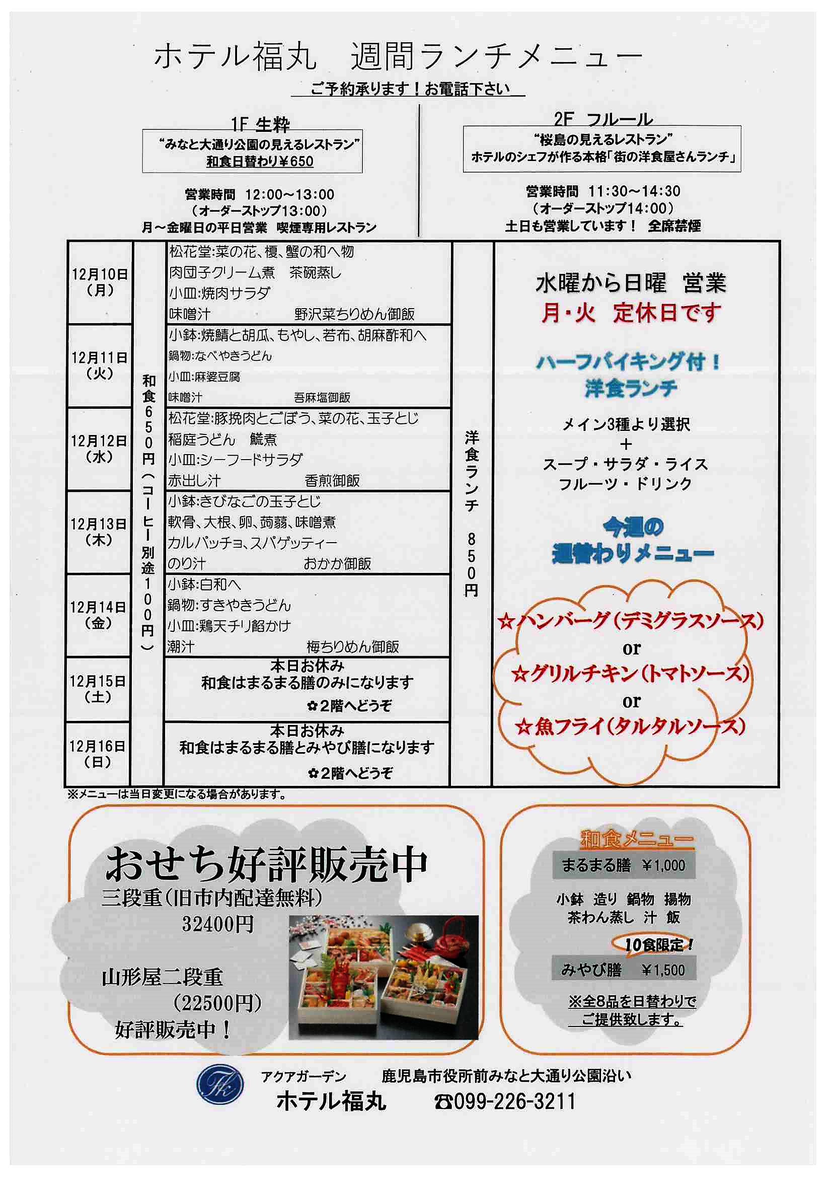 ホテル福丸 お知らせ お食事 12月10日の週のランチのご案内
